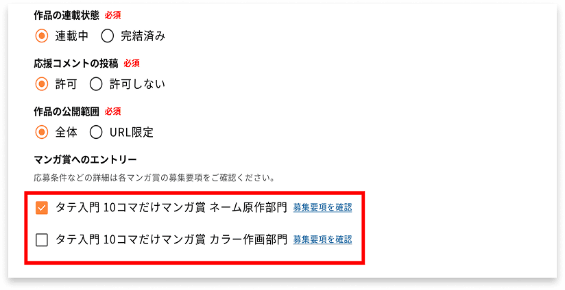 ネーム原作とカラー作画の2部門!